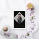 A modern minimalist graduation announcement photo real foil stamped card design featuring a minimalist arch tassel frame on a diamond shaped (mortarboard) photo, double sided card.
