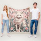 Elegant Arctic Fox Pink Floral Fleece Blanket