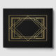 For an elegant Art Deco Gatsby Style wedding or event, this design features a sleek black background with gold decorative angular frame and matching text. Edit the sample text with your names, dates or other desired text. (When adding to cart, ignore the warning message indicating part of the design may be blank. This message occurs because all of the design has been placed on the background, full width of the product, rather than on only the front or only the back.)