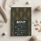 Elegant Art Deco Gold Green Wedding RSVP Card