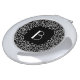 Chic art deco style compact mirror in elegant black and white features your single initial monogram in the center in fancy deco lettering, surrounded by an ornate, intricate white circular border.