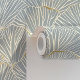 Elevate your interior decor with this elegant Art Deco Shell Blockprint Peel & Stick wallpaper. This sophisticated design features an intricate pattern of overlapping shell motifs in soothing blue tones, accented with delicate faux gold lines that add a touch of luxury. The blockprint style imparts an artisanal, handcrafted feel, perfect for creating a refined and timeless atmosphere. This removable wallpaper offers the convenience of easy installation and removal without damaging your walls, making it ideal for a living room, bedroom, or office. Embrace the beauty and elegance of the Art Deco era with this stunning wallpaper.