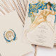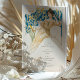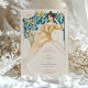 Add a touch of vintage charm to your wedding with this beautifully designed Art Nouveau-inspired drinks menu card. The front side features a stunning illustration of a graceful lady in an ethereal golden-yellow gown, set against a backdrop of lush, floral motifs in shades of blue and green. The sophisticated menu includes a curated selection of cocktails, beer, wine, and spirits, elegantly listed in a classic typeface. The reverse side showcases a delicate botanical emblem in gold and blue, adding an extra layer of elegance. Perfect for weddings and other special occasions, this menu card is a delightful blend of art and function to impress your guests.