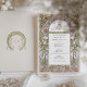 Invite your guests to celebrate your wedding with this beautifully crafted Art Nouveau-inspired invitation. Featuring intricate floral patterns and graceful lines reminiscent of Alphonse Mucha's classic designs, this invitation is highlighted with luxurious gold foil accents. The front showcases a stunning combination of lavender, green, and gold hues, creating a harmonious and sophisticated look. The back continues the theme with a refined monogram and additional floral elements, making it perfect for a vintage-inspired wedding. Ideal for couples who appreciate timeless elegance and artistic details, this invitation sets the tone for a truly memorable celebration.