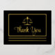 Simple, elegant and modern black graduation or professional attorney or other legal professional "Thank You" with real gold foil front law scales of justice and text with rectangular frame and double bottom lines and back black text postcard design with back template for return address. Original design by Holiday Hearts Designs (all rights reserved).