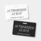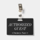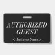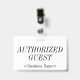 This respectable badge design features the message "AUTHORIZED GUEST", and a customizable company name or other custom message. A badge like this could perhaps be used to indicate that a person is a known and authorized guest or visitor at a business or workplace. [~Z0000307]