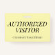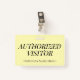This respectable badge design features the message "AUTHORIZED VISITOR", and a customizable company name or other custom message. A badge like this could perhaps be used to indicate that a person is a known and authorized guest or visitor at a business or workplace. [~Z0000307]