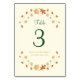 The romance of autumn is captured in this table number. Fall leaves cascade down the card in a flurry of reds, oranges, and golds against a cream background. Oak and maple leaves are prominently featured. Customize your name and date on both sides. Fall is in the air with this elegant suite.
