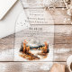 With this acrylic transparent invitation in an arch shape you will have a unique and unconventional invitation to send to your friends and family. Feature a watercolor landscape painting of trees, a river and montains in the background. Earthy colors of a autumn nature illustration.