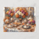 Elegant Autumn Tea Party Watercolor Postcard