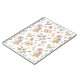 This design features a delicate fall-themed watercolor pattern. The design includes soft and muted tones of pumpkins in shades of white, blue, and light orange, accompanied by an assortment of autumn leaves in various shades of yellow, orange, and brown. Scattered among the pumpkins and leaves are gentle floral elements and sprigs of greenery, all arranged on a clean, white background. The overall aesthetic is light, airy, and evocative of the serene beauty of the fall season.