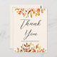 Beautiful bold watercolor fall leaves decorates the border of this boho autumn wedding thank you postcard. Gorgeous shades of red, orange, and brown form the botanical border of these cream postcards for a bohemian bride.