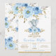 Elegant Baby Blue Floral Elephant Boy Baby Shower Invitation