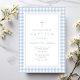Elegant Baby Blue Gingham Boy Baptism Invitation