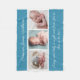 A beautiful baby boy photo collage blanket in pretty blue with their name in beautiful cursive typography above your sweet newborn boy or girl photograph collage. Customize this keepsake gift with your favorite pictures of your new infant and keep this inspirational religious quote or replace with your own. Every sweet baby is a gift sent from God to show us his love.