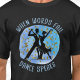 Evoke the timeless allure of ballroom dancing with our sophisticated T-shirt featuring an elegant graphic of a silhouette couple in motion. With the poignant words 'When Words Fail, Dance Speaks,' this tee captures the essence of expression through movement. Whether you're a seasoned dancer or simply appreciate the beauty of dance, this design exudes grace and refinement suitable for any occasion. Crafted with premium materials, it's a unisex garment that transcends gender, making it a versatile addition to any wardrobe.