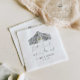Enhance your wedding reception with our elegant black and white design, featuring a unique hand drawn barn illustration, and the quote "eat, drink, and be married", in modern calligraphy. Customized with the couple's names and special date, this minimalist design adds a personal sophisticated touch for any size wedding celebration or day after brunch.