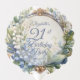 A stunning garden-inspired birthday party design featuring an elaborate Baroque-style decorative circular frame adorned with an elegant blend of floral motifs. The dusky blue frame is gracefully draped in delicate Lily of the Valley and Hawthorn flowers, creating a romantic and timeless atmosphere. The intricate detailing of the Baroque elements adds a touch of grandeur, while the soft, natural beauty of the flowers brings a sense of tranquility and charm. Perfect for an enchanting and sophisticated celebration.