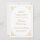 Send your guests a touch of elegant romance with this Islamic Muslim Walima reception invitation. The gold baroque leaf motif decoration brings a luxury, vintage frame to a simple white ivory card. The headline "Walima Ceremony" stands out in trendy stylish script, while venue information appears in formal typography. Ideal for a fall, summer or winter season. Golden Arabic wording.