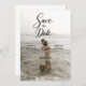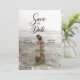 Featuring sophisticated script typography for "Save the Date" and your names, this card offers a clean, minimalist aesthetic that lets your cherished engagement photo shine. The serene beach setting in the example photo inspires dreams of coastal celebrations, destination weddings, or simply a relaxed, romantic affair.