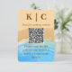 Modern coastal wedding invitation featuring soft blue ocean waves and sandy beige watercolor textures. Perfect for beach weddings, seaside ceremonies, summer weddings, and destination celebrations. Elegant script typography with a romantic aesthetic. Customize it with your wedding details and QR Code of website.