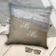Pillow featuring a romantic beach design in sandy and dusty blue colors. Beautiful for a wedding or anniversary or for anyone who loves the beach.