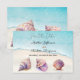 A sophisticated beach wedding design featuring watercolor seashells and pearls on a clean white background. Elegant script and classic serif fonts create a timeless look, perfect for a coastal, destination, or nautical-themed wedding. The soft pastel tones evoke a romantic and serene ocean atmosphere.