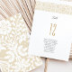 This elegant table number card features a refined beige and ivory color palette with intricate floral detailing, adding a touch of sophistication to your wedding reception. The front of the card prominently displays the table number in a stylish font, while the back continues the floral theme with the same delicate design. Perfect for a traditional or classic wedding, this table number card not only guides your guests to their seats but also enhances the overall aesthetic of your wedding décor. The subtle yet luxurious design ensures that these cards seamlessly blend with a variety of wedding themes.