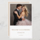 Celebrate your love story with this timelessly elegant wedding menu. The design features a full-page romantic couple's photo as the focal point, framed with clean typography for a perfect balance of modern simplicity and classic charm. The couple’s names and wedding date are prominently displayed in a sophisticated sans-serif font, while the additional details are presented in a graceful handwritten-style script below.