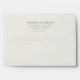 This wedding envelope features a minimalist design with a clean, centered layout on an off-white background. The color palette includes soft beige and muted gray, creating a subtle contrast that enhances readability while maintaining elegance. The typography uses a sophisticated serif font in two distinct weights to differentiate between names and address information, ensuring clarity and formality. With its modern and understated style, this envelope is perfect for conveying refinement and tranquility, making it ideal for formal invitations and communications.