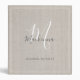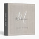 Elegant Beige Modern Monogram Script Linen Office 3 Ring Binder