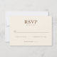 This wedding RSVP card features a minimalist and elegant design with a soft beige background, creating a clean and sophisticated look. The layout includes ample negative space, enhancing readability and focus on the essential details. Serif fonts in a deep brown hue add a touch of formality, while a handwritten-style initial "M" adds personalization. The card offers clear options for responding, ensuring a straightforward and classic aesthetic perfect for formal events.