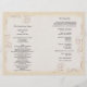 This design features a muted beige patterned background accented by elegant art deco inspired scroll work. Shown here as a customizable wedding program, the text on this versatile design can be personalized for any occasion. We have a variety of colors available!