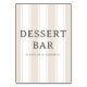 This elegant wedding tabletop sign features a minimalist design with vertical stripes in soft beige and white, creating a sophisticated backdrop. The central text "DESSERT BAR" is prominently displayed in a classic serif font, inviting guests to indulge freely with the friendly message "PLEASE HELP YOURSELF!" below it. The clean layout and neutral color palette convey a welcoming and refined atmosphere, perfect for enhancing any dessert station at your event.
