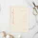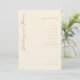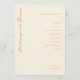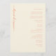 This wedding program features a minimalist and elegant design with a soft beige background, creating a warm and inviting atmosphere. The layout is vertically oriented, showcasing the couple's names in a prominent coral cursive script on the left side, while the right side presents a structured list of ceremony events in clean, sans-serif typography. The overall style is modern and sophisticated, emphasizing clarity and simplicity, making it perfect for couples seeking a serene and celebratory mood for their special day.