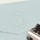 Add an elegant touch to all your correspondence with our chic return address embosser, featuring your address curved around a botanical wreath illustration, with your single initial family monogram in the center.