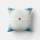 This BAE pillow is also decorated an elegant floral frame with blue flowers and bluish green leaves, which also appear faded in the background towards the center of the pillow. The back has the same frame of flowers and a heart in the middle of a white band that crosses the back of the pillow horizontally.
