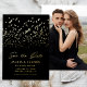 This gorgeous wedding Save the Date card features countless birds flocking together in real gold foil over a pure black background. The Birds of a Feather title signifies the importance of the couple's lives becoming joined in marriage. The back contains a full bleed photo template. Elegant, classy, modern, and unique!