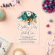 Elegant Birthday Party Teal White Gold Flowers Acrylic Invitations