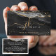 Modern, stylish professional business card with black agate geode and faux gold glitter sparkle accents personalized with chic, elegant calligraphy monogram initials and name. CHANGES: Change the text font style, color, size and placement by clicking on EDIT under the PERSONALIZE section. ASSISTANCE: For help with design modification or personalization, color change, resizing, transferring the design to another product or if you would like coordinating items, contact the designer BEFORE ORDERING via the Zazzle Chat MESSAGE tab below or email makeitaboutyoustore@gmail.com.