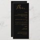 Elegant black and gold wedding or dinner reception Menu card. Contemporary, simple and elegant design with beautiful golden modern hand written calligraphy. Front and back background color in black. Text in golden hues. Ability to change both front and / or back background color by selecting "customize further". Design available in a variety of color choices. Part of our "Wedding and Events Products in Black" collection with a variety of coordinating products available including seating plan cards and table numbers.