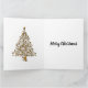 A very sophisticated and elegant, yet simple Christmas card featuring a very luxe, golden Christmas tree on the front on a bold, black background to give it a very contemporary style. There is a second gold Christmas tree on the inside of the card, and custom text which includes the more traditional Christmas greeting of 'Merry Christmas', however you may personalize this to suit with anything else you wish, such as 'Happy Holidays' or 'Merry Christmas from the Jones Family'....for instance.