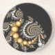 Elegant abstract fractal design of spiraling gold and white beads on a black background. Beautiful design to accent any home or office.