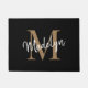 Elegant Black and Gold Custom Monogram Script Name Doormat.Easily personalize this modern elegant doormat with your custom monogram and name.