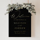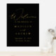 Elegant wedding welcome sign featuring "Welcome" in a modern gold foil calligraphy script with a black background (or color of your choice). Personalize the black and gold foil wedding sign by adding your names, wedding date, and wedding location. The vertical welcome sign is designed to coordinate with our Modern Elegance wedding collection and is available in other colors.