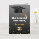 Celebrate her incredible achievement with this elegant and modern graduation card! Featuring a sophisticated black and gold theme, this design showcases the inspiring quote, "She believed she could, so she did," in beautiful gold typography. The minimalist layout is accented with a classic graduation cap and shimmering gold stars, making it a perfect keepsake for high school, college, or university graduates.A perfect card for High School or College graduation!