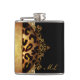 Elegant Black and Gold Monogram Leopard Hip Flask