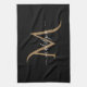 Elegant Black and Gold Monogram Script Name Kitchen Towel