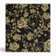 Elegant Black and Gold Rose Pattern in Retro Style 3 Ring Binder