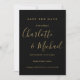 Featuring signature style names, this elegant black and gold save the date card can be personalized with your special wedding day information in chic gold typography. Designed by Thisisnotme©